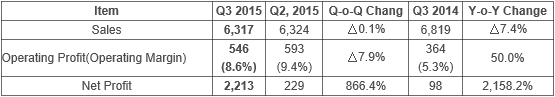ㅁ Q3 sales of 228.5 billion won, operating profit of 2.2 billion won