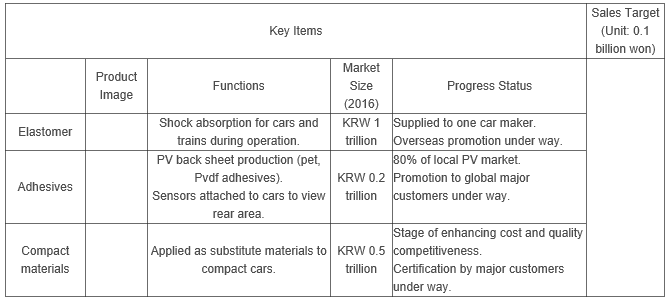 ● SKC declares New Vision[1] on its 40th anniversary and plans to actively pursue innovation of its management infrastructure, reform its core business structure, and secure growth potential through restructuring and growth of specialty product lines.