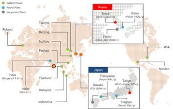 MCNS is a 50:50 joint venture company between SKC and Mitsui Chemical that was founded by spinning off their respective polyurethane businesses. With a production capacity of 280,000 tons of polyol, 250,000 tons of MDI, and 120,000 tons of TDI, it supplies PU products to ten system houses around the world, including the USA, Mexico, China and Poland. MCNS plans to steadily increase its overseas system houses to other regions in addition to India, where rapid economic growth is expected, and to grow into a global PU maker by doubling its overseas product _ base_s by 2020. [End]