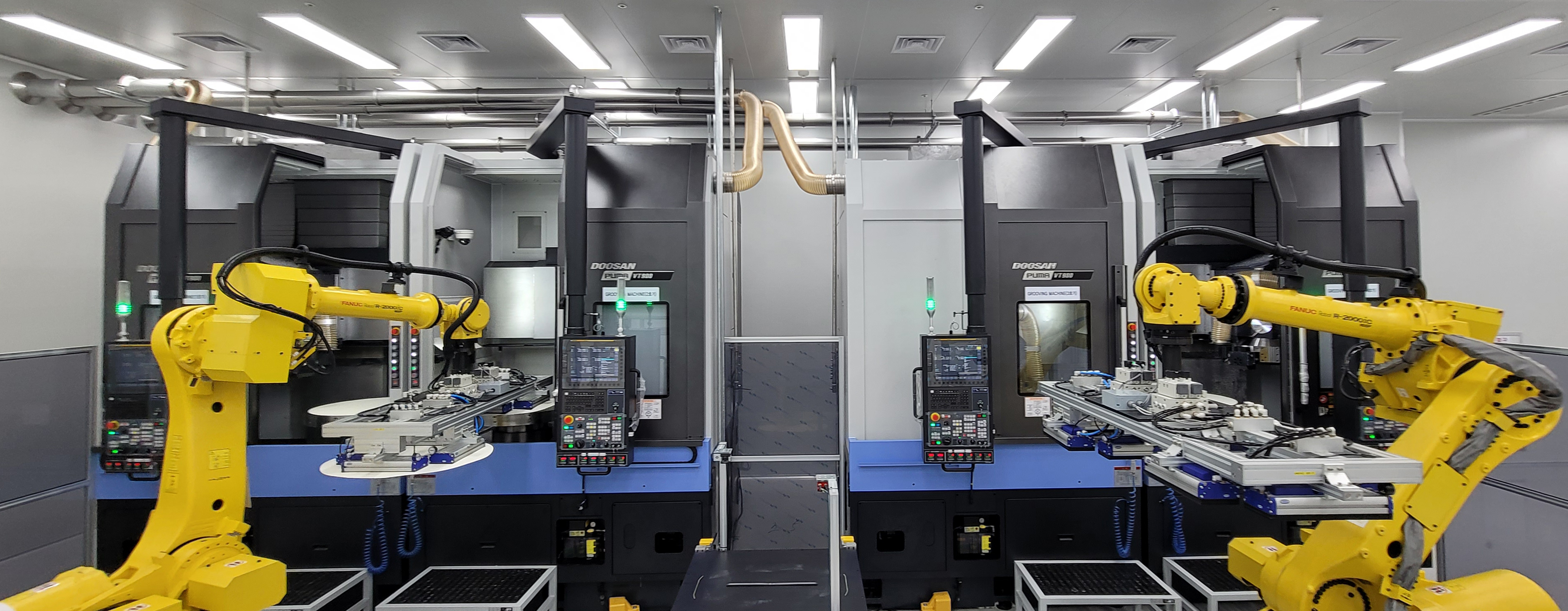 [CMP pad manufacturing processes at the Cheonan Factory of SKC solmics deploying robots to improve product quality significantly.]